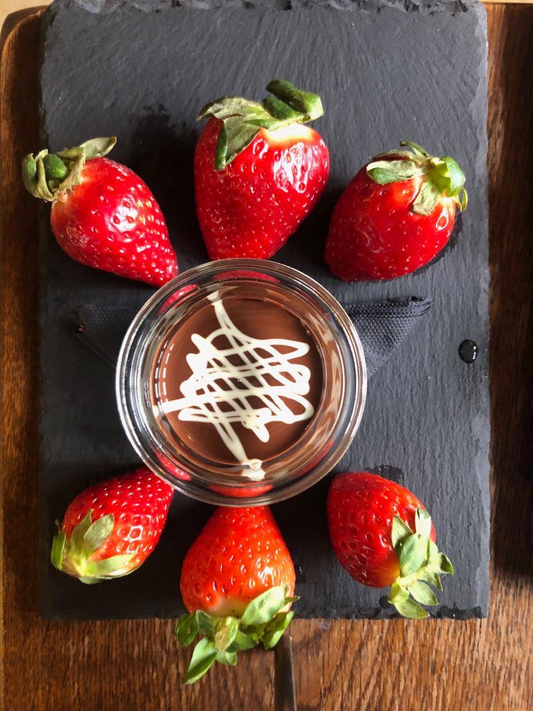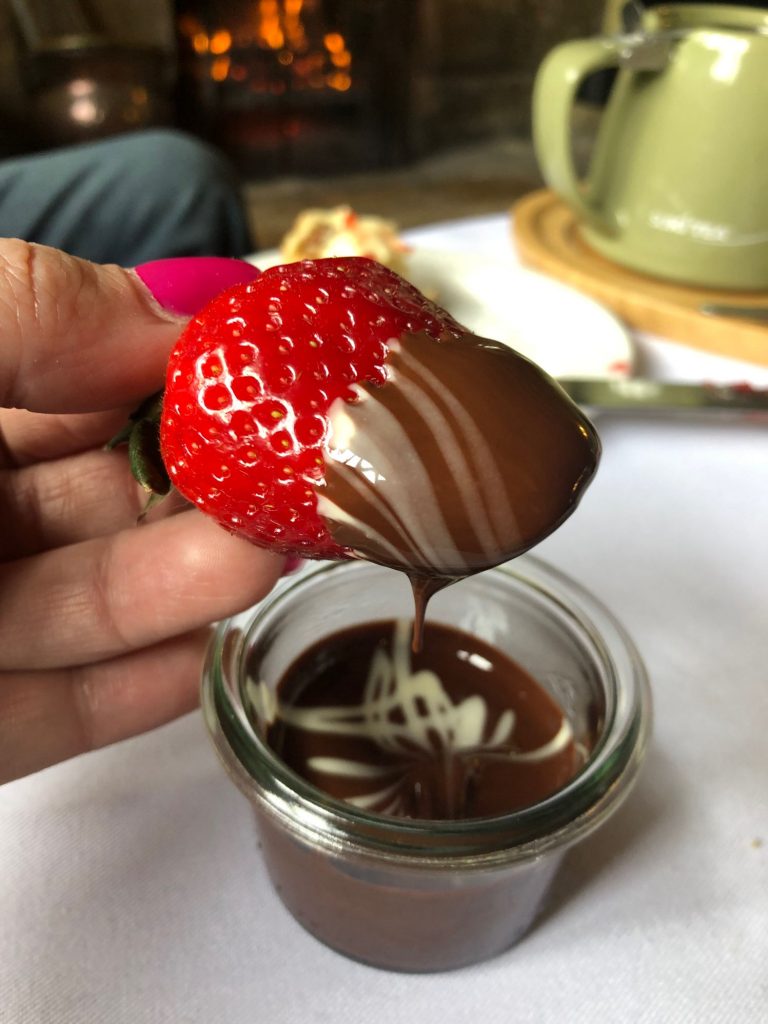 From sandwiches on the traditional scones with clotted cream and jam. A delicious tier. Then another “bonus” in the form of beautiful strawberries and chocolate to dip them in… thinking of starting a petition to have that made a staple of all afternoon teas!