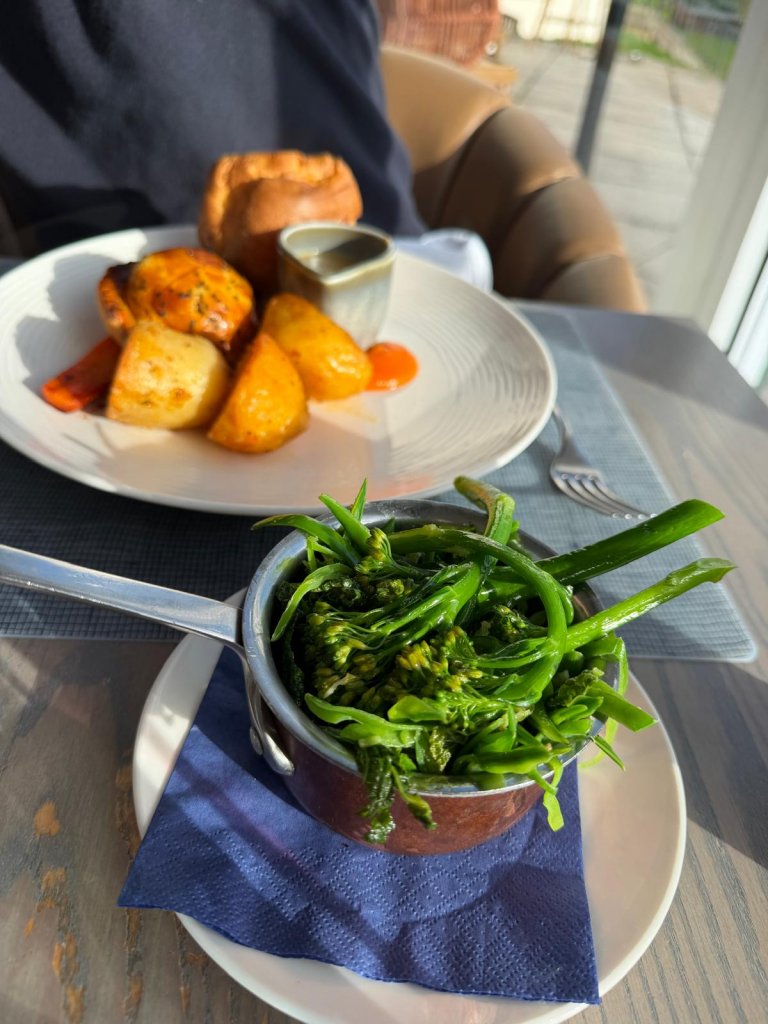 The mains only built on that promise. The heritage beetroot risotto was exceptional. Beetroot can often be delicate and understated, but here it was transformed into something bold and deeply flavourful, a true flavour bomb. Rich, earthy and beautifully balanced, it showed real skill to coax so much depth from such a subtle ingredient. Alongside it, the vegetarian wild mushroom, spinach and sweet potato masala curry pie was everything a Sunday lunch should be and more. Packed with warming spices and hearty, satisfying textures, it was elevated further by a luxurious truffle and almond korma sauce that added layers of indulgence. Served with all the trimmings, from homegrown roast potatoes crisped to perfection, to honey-glazed carrots, vibrant spring greens and Evesham tenderstem broccoli, every single element on the plate felt considered and full of flavour. Even the Yorkshire pudding held its own, completing a dish that managed to be both comforting and exciting, with each component bringing something special to the table.
