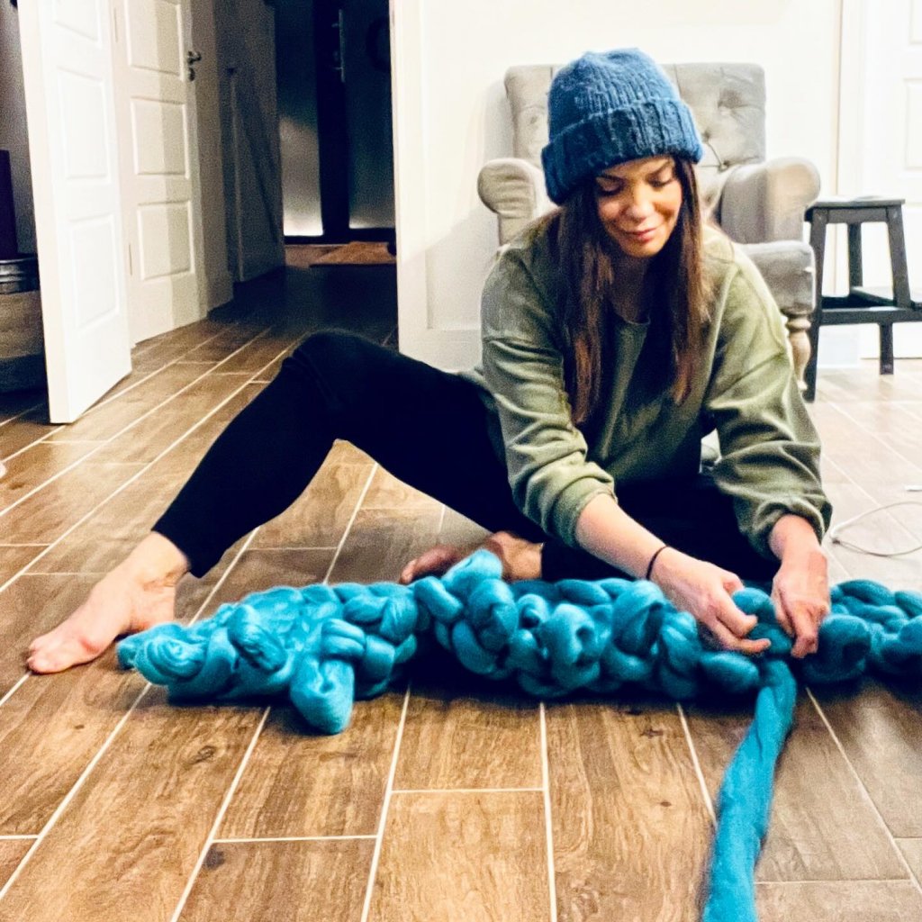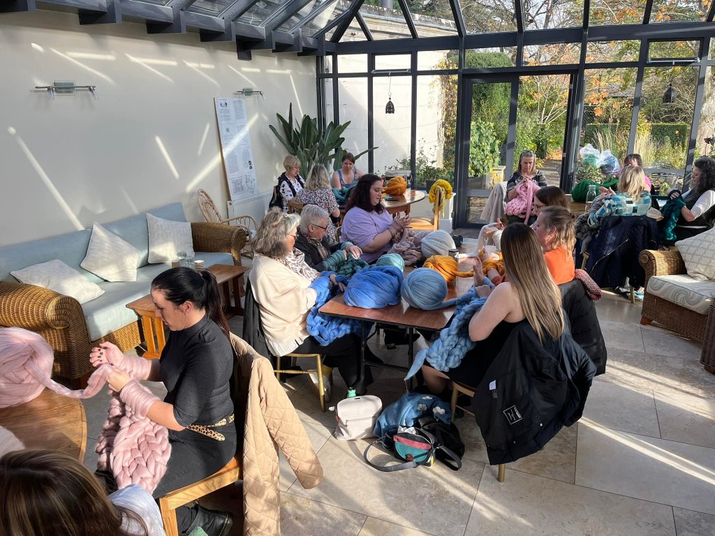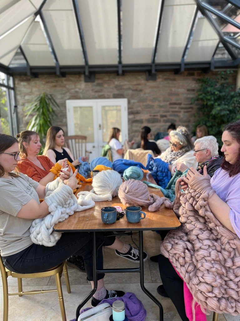At the heart of the business is the signature arm-knitting experience: participants skip traditional needles, using their arms to knit sumptuous blankets, scarves and statement pieces from chunky yarns under Courtney’s expert guidance. This technique offers something both dramatic and deeply satisfying—the results are bold, cosy, and full of texture, just as Courtney originally intended when she created the brand to bring “look, colour, texture and aesthetic” into the home.