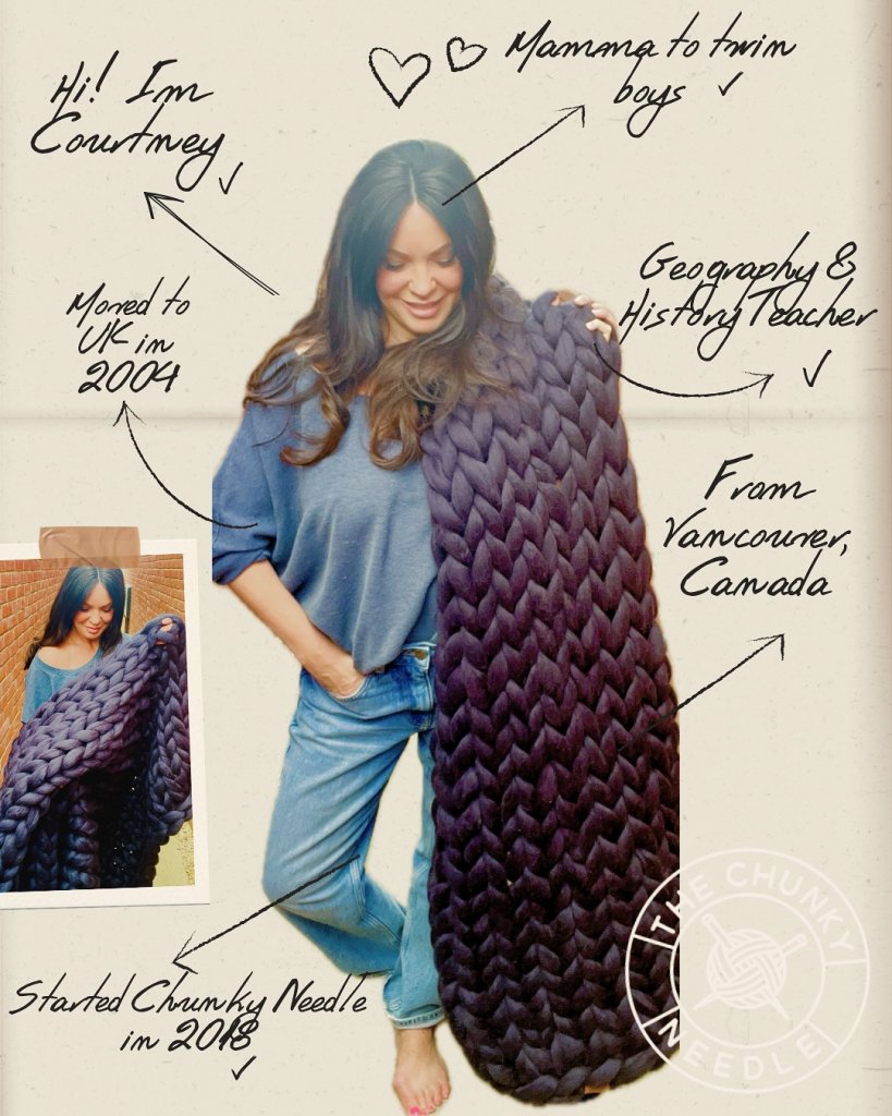 Discover the warm, tactile world of The Chunky Needle, founded by creative force Courtney Love. Courtney describes herself as the “chunky-junkie” behind the brand, having embraced chunky knitting over two decades ago and launched The Chunky Needle in 2018. Her passion for oversized, ultra-soft merino wool pieces transformed into a full-scale home-ware brand and a vibrant workshop programme across the Cotswolds and beyond.