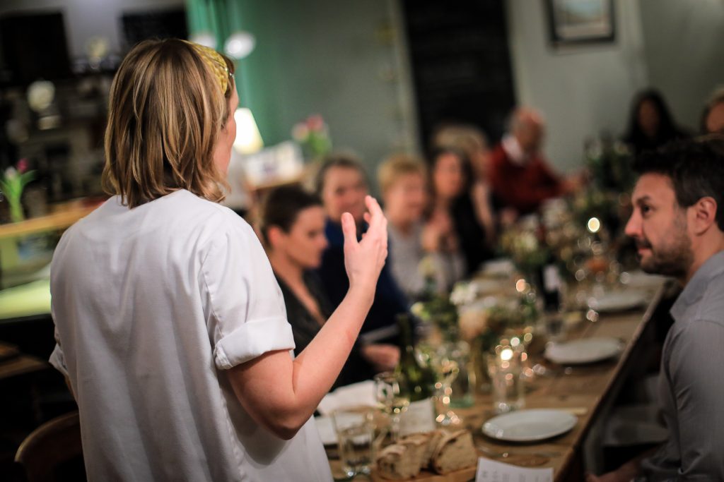 Tickets are £50 including welcome cocktail (it’s Bring Your Own after that). If you’ve never been to a supper club, here’s how it works: Everyone arrives at 7:30 for drinks and nibbles, then we all sit down at a long communal table (you sit with your group though) at around 8ish. The food is piled high on sharing platters and Kathy talks a bit about the food, how it’s grown and cooked, as it’s served. We finish around 10:30 and everyone heads home with a bag of petit fours for the trip home.