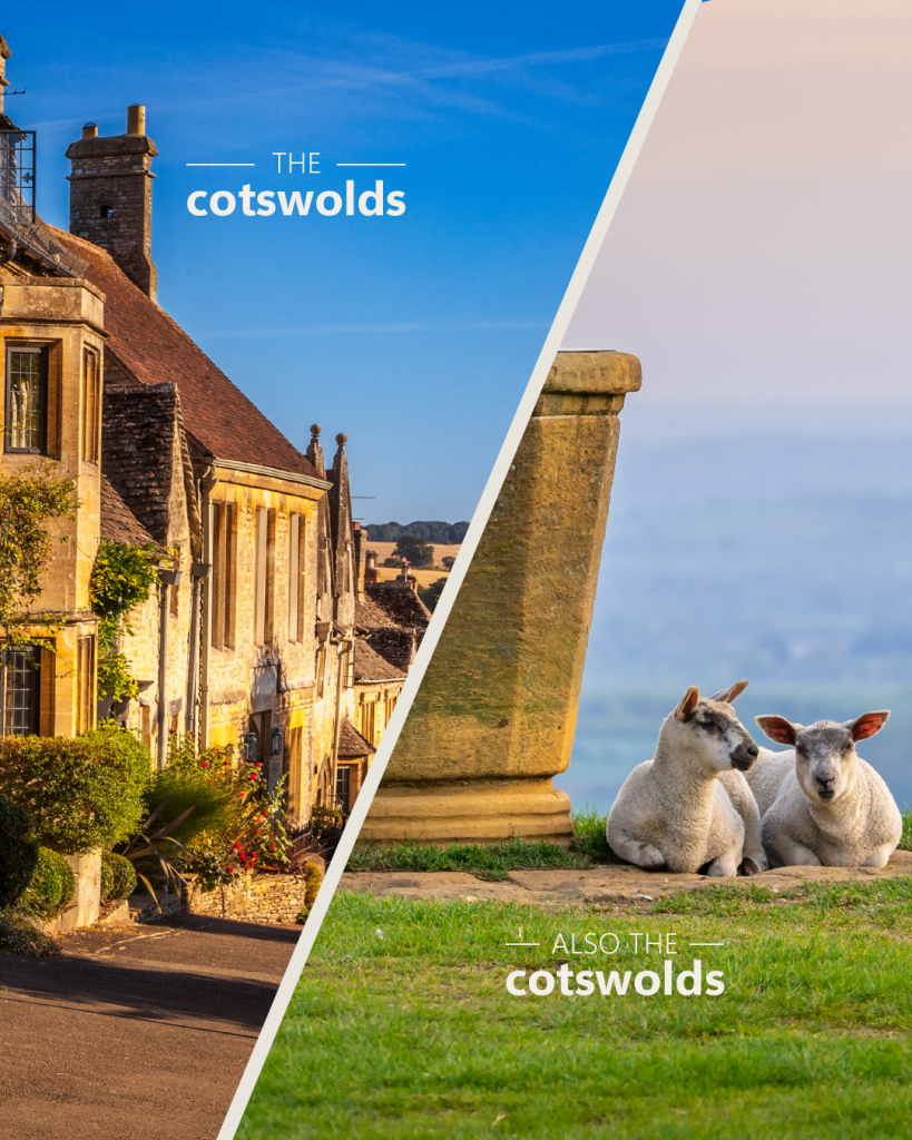 The image on the left is the top of the High Street in beautiful Burford 🤍 The image on the right is the top of Dover’s Hill in Chipping Campden🤍