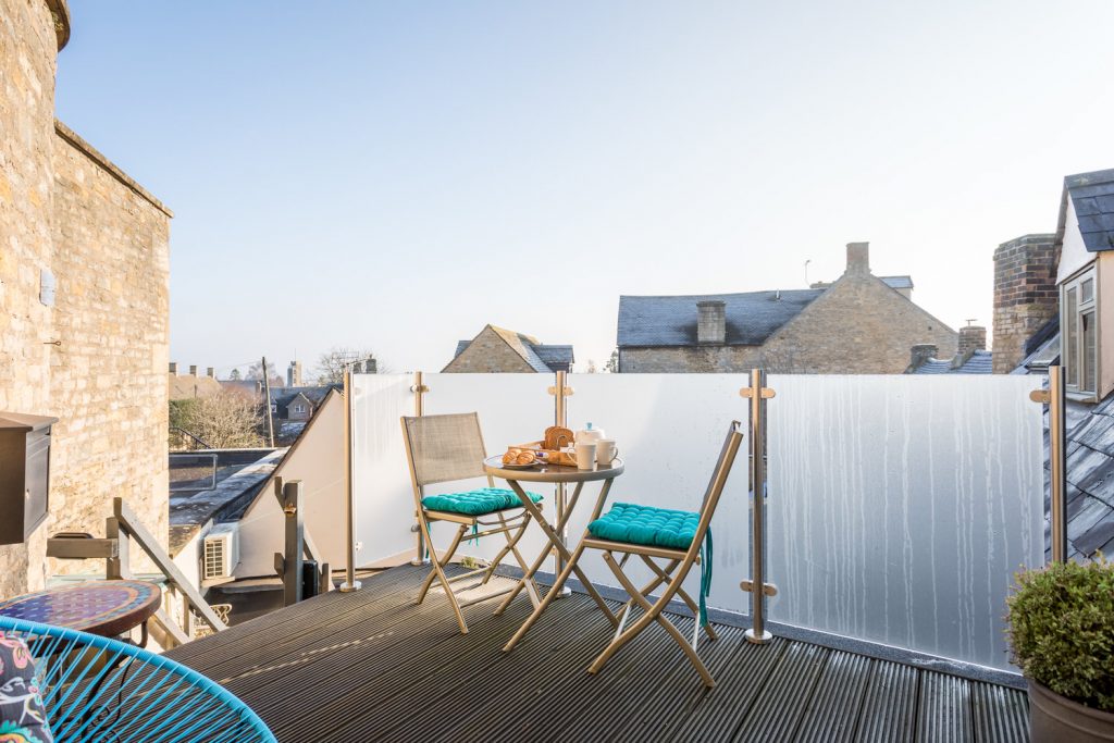 The Loft is a beautiful, romantic apartment for two in the heart of Stow-on-the-Wold. It is located in a stunning grade II listed Cotswold stone building with its own access and delightful, private decked terrace with outdoor dining and seating.