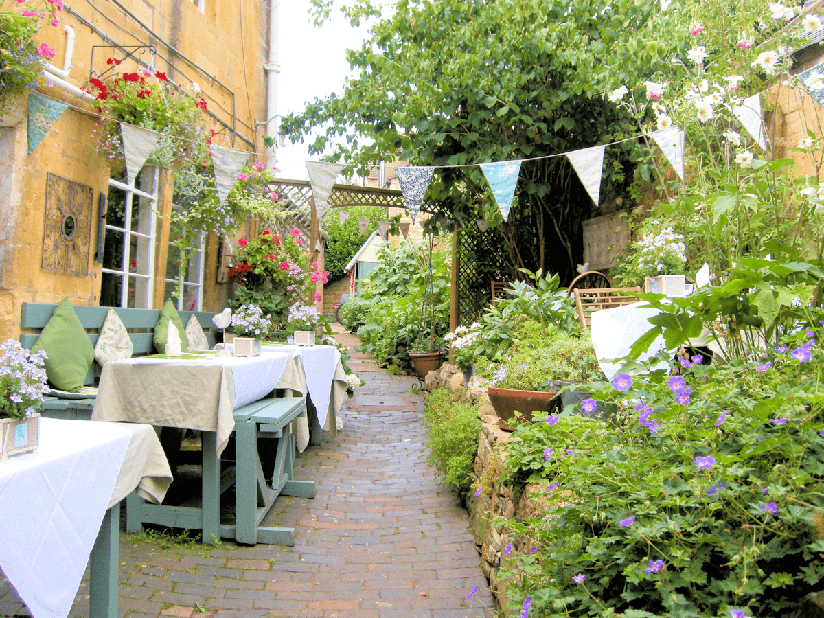 The beautiful courtyard at Michael Mediterranean in Chipping Campden