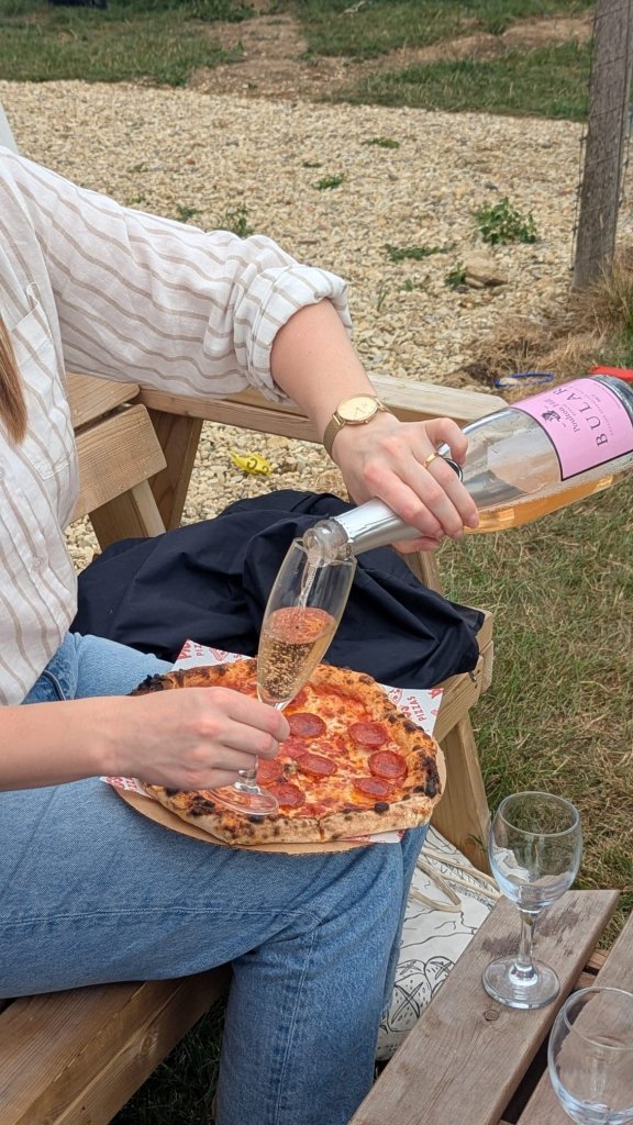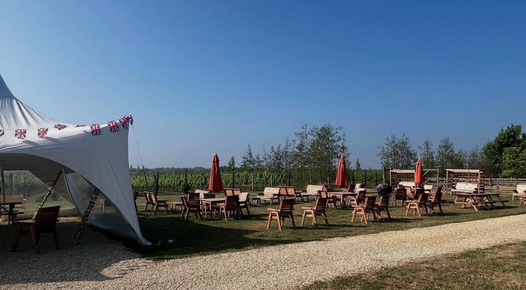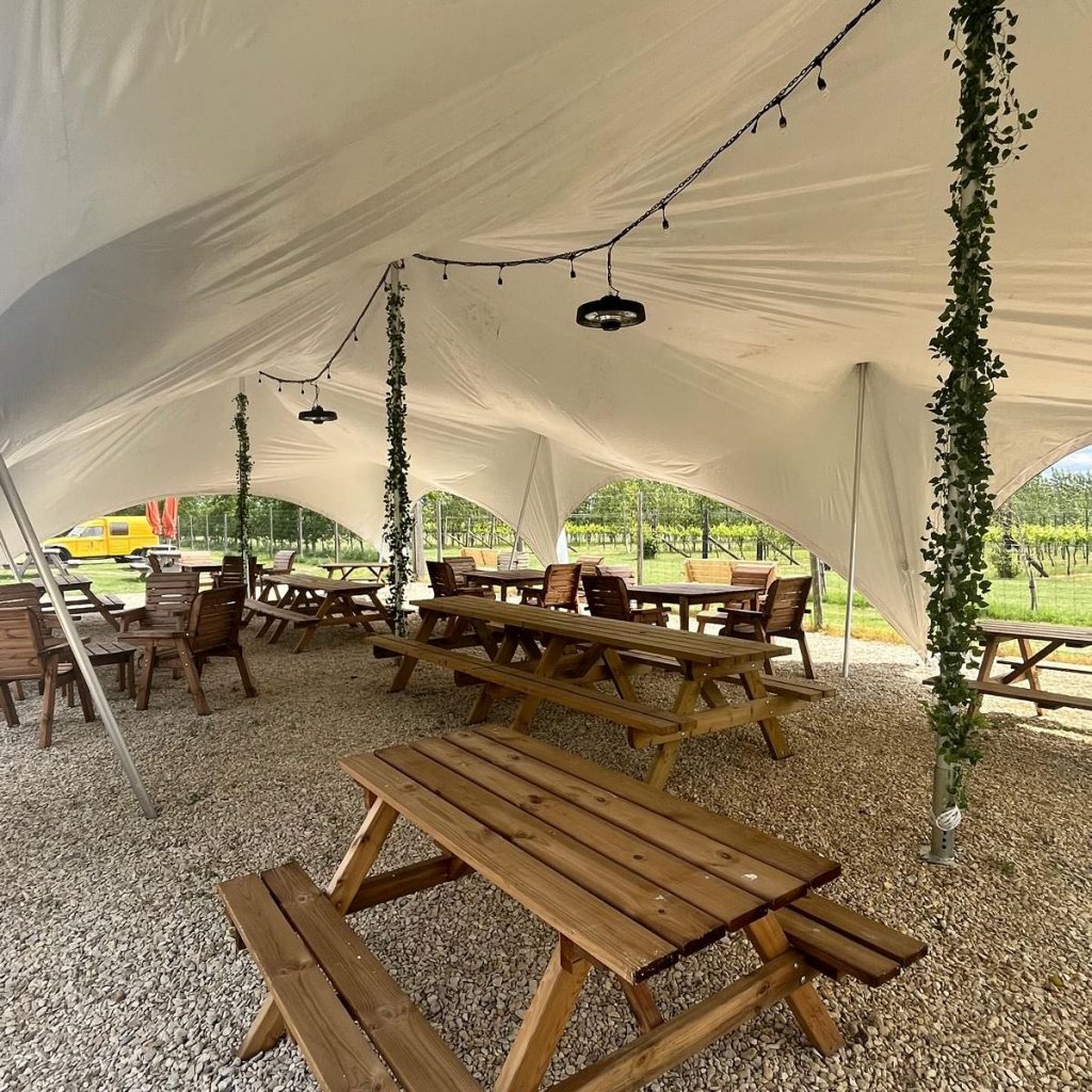 Set against sweeping views of the vineyard and surrounding Cotswold countryside, the experience is as much about the setting as it is about what’s on offer. Guests can enjoy Poulton Hill Estate wines by the glass or bottle, alongside a selection of local beers and soft drinks, all served in a relaxed, open-air environment with both outdoor seating and a covered marquee available.