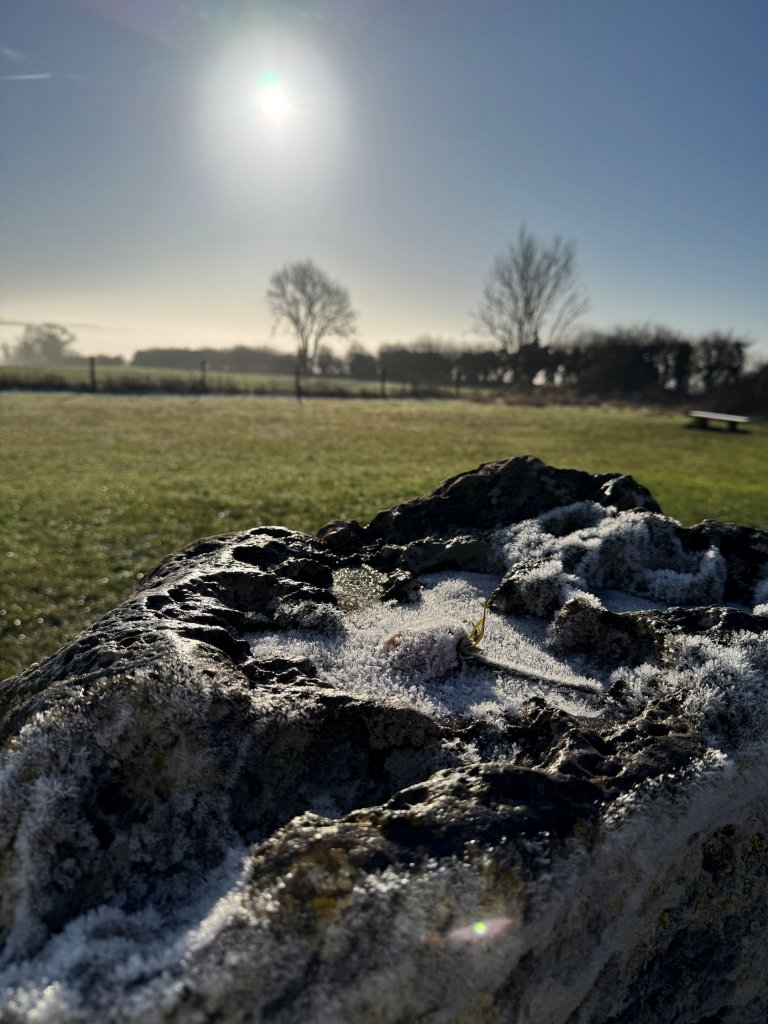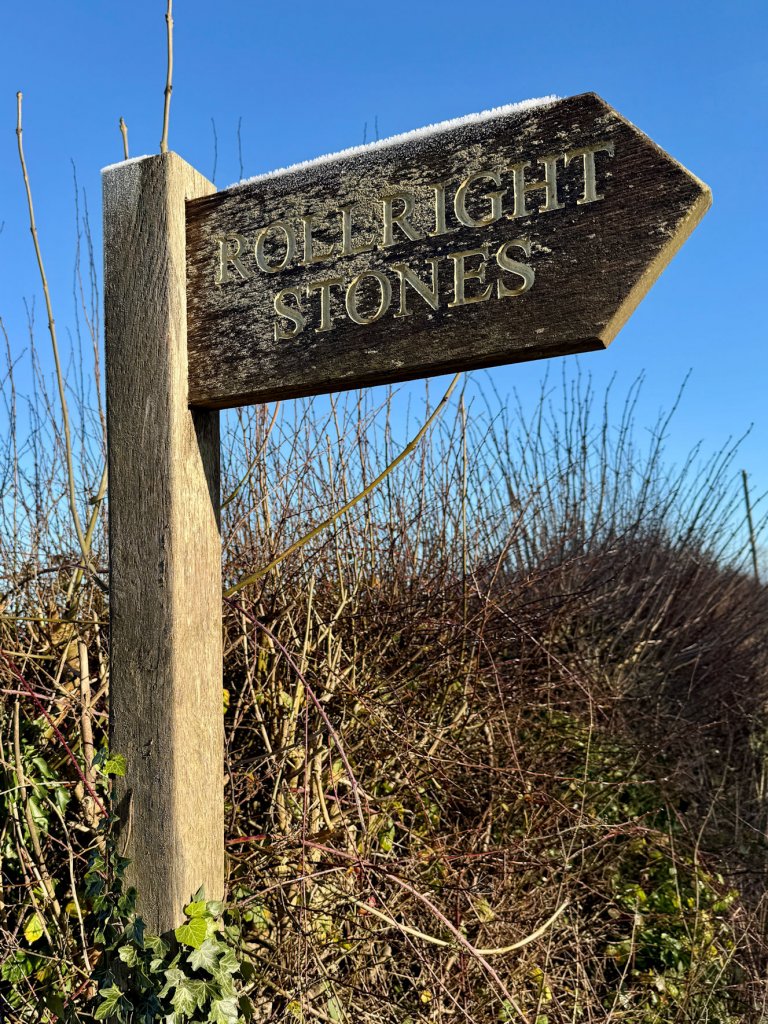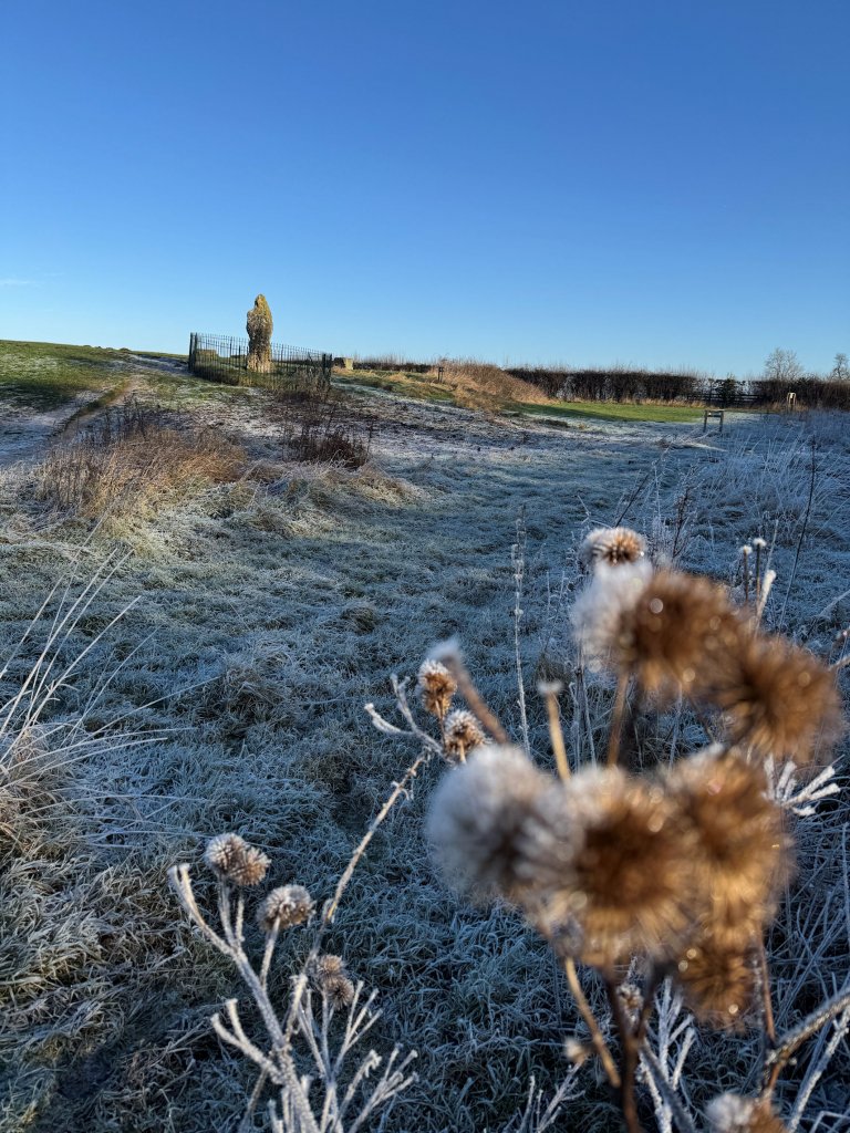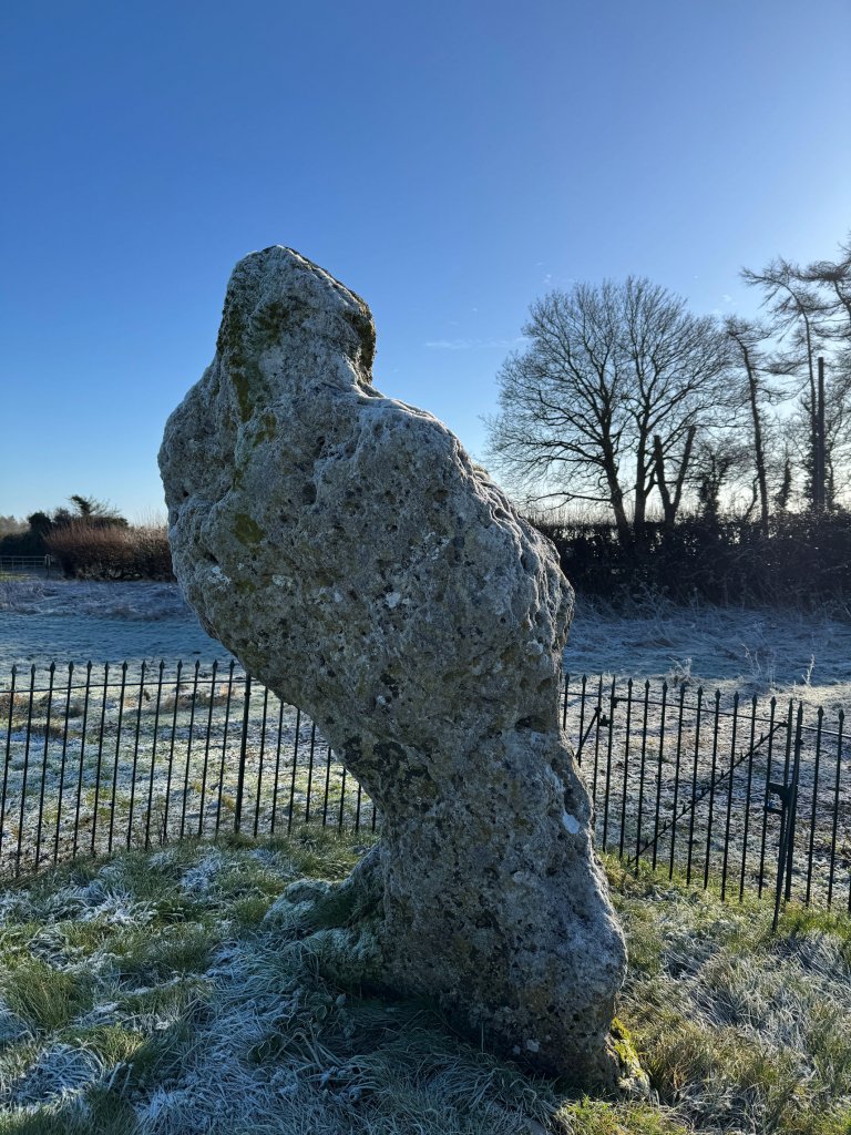 Then we crossed the road to find The King Stone, a solitary giant, standing imposingly and fenced off for protection. The views from both locations were breathtaking – the rolling hills of the Cotswolds, on this day blanketed in a pristine layer of frost and shimmering in the winter sun, would look different in other kinds of weather but would always be wonderful in its outstanding natural beauty.