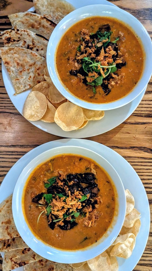 The main course features katsu paratha tacos, filled with katsu-spiced pulled chicken or mushroom, layered with chaat masala, avocado crema and roquito peppers, and complemented by pickled apple and beetroot. Served in flaky Malabar parathas finished with organic brown butter, this dish brings together comfort, richness and vibrant flavour.