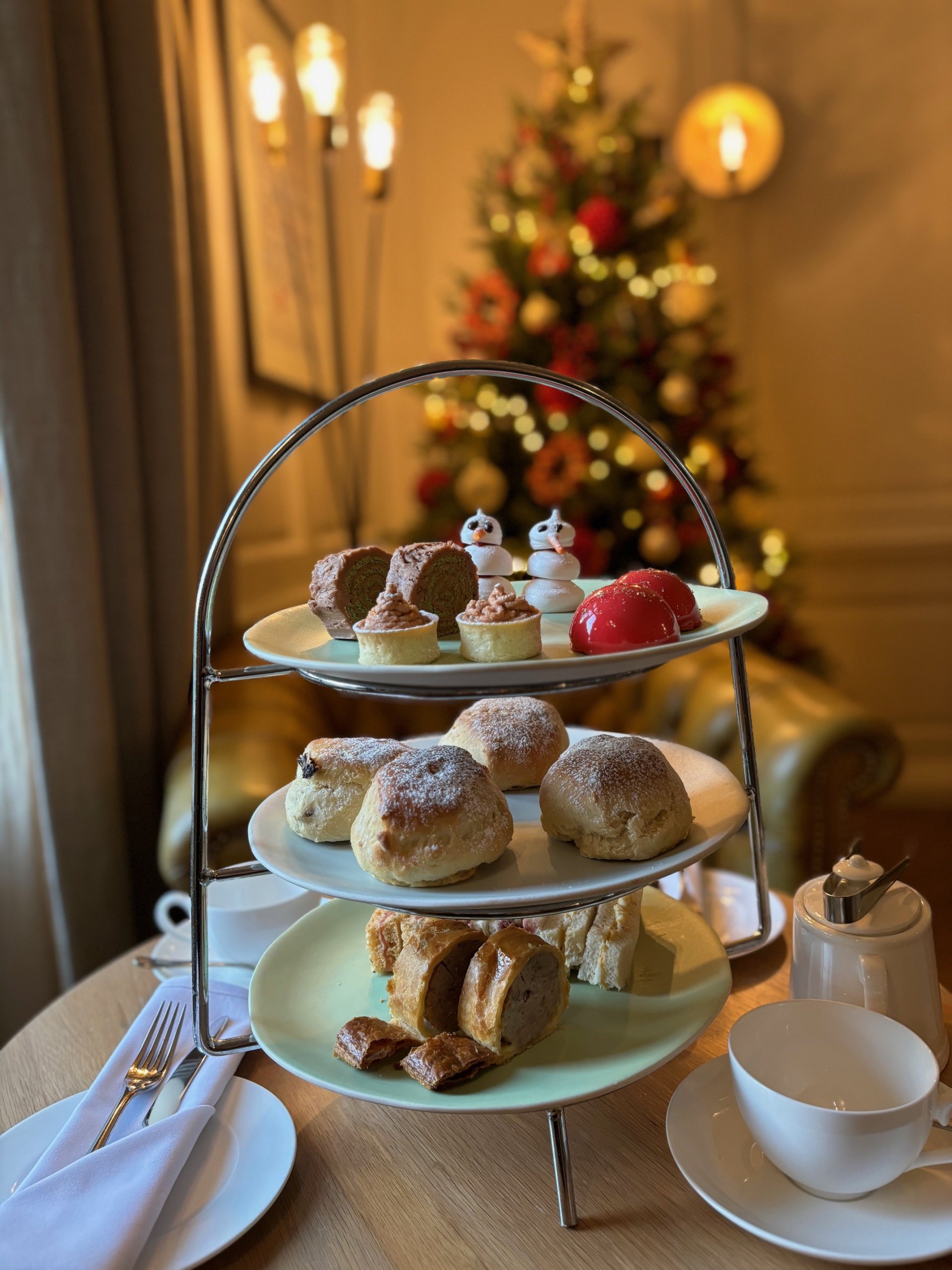 During the festive season, The Slaughters Manor House elevates the afternoon tea experience with seasonal charm. From mid‐November to late December, the offering includes warm fruit and plain scones, clotted cream and jam, an array of homemade festive cakes and pastries, and a curated selection of delicate finger sandwiches—all served with fine teas or coffee. To enhance the festive spirit, a glass of mulled wine may accompany the tea, inviting you to savour the moment in the candle-lit lounges or by the fireside.
