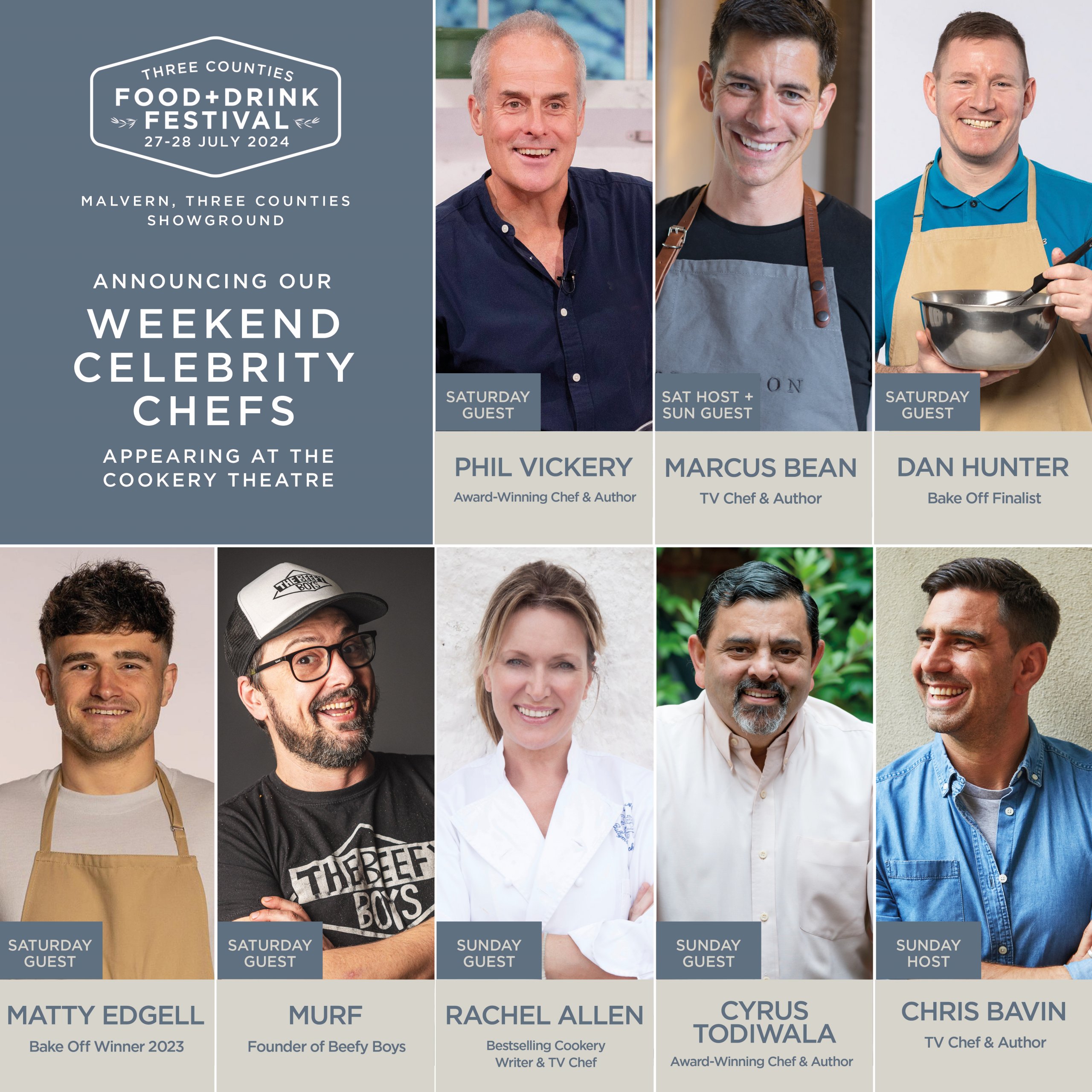 One of the Festival’s main attractions is the 500-seat cookery theatre with award-winning TV Chefs offering daily demos, which is accessible to all ticket holders. Taking to the stage on Saturday 27th July are renowned chef and TV presenter on This Morning and author Phil Vickery, Bake Off Winner Matty Edgell and finalist Dan Hunter plus founder and owner of the award-winning Beefy Boys, Murf. On Sunday 27th July, best-selling cookery writer and TV Chef Rachel Allen will be joined by chef, author, educationist and entrepreneur Cyrus Todiwala and TV Chef and author Marcus Bean. Marcus will be the cookery stage host on Saturday, with Chris Bavin, presenter of BBC’s Eat Well For Less? hosting Sunday’s demos.